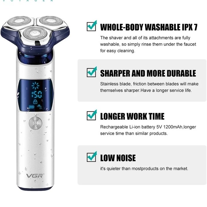 ماشین اصلاح وی جی آر مدل V-328 سه تیغ ضد آب با برش چرخشی