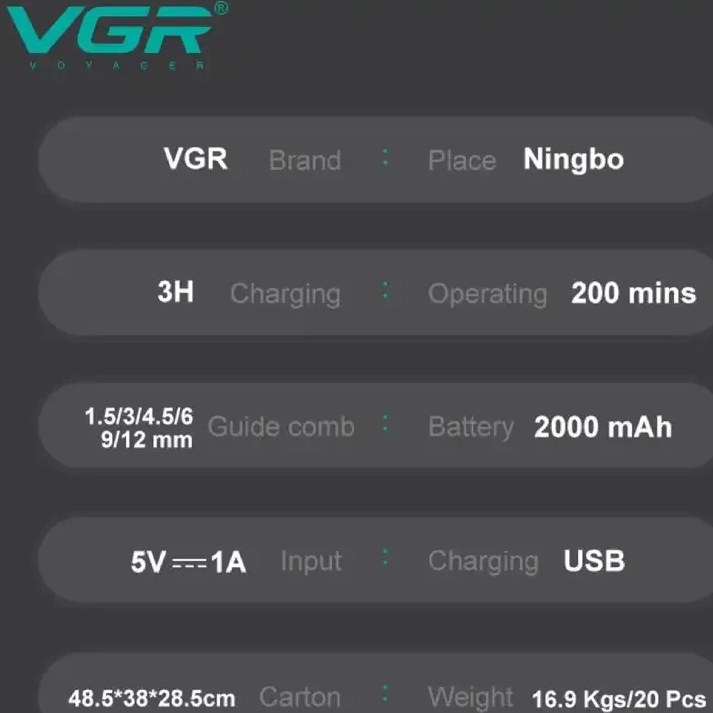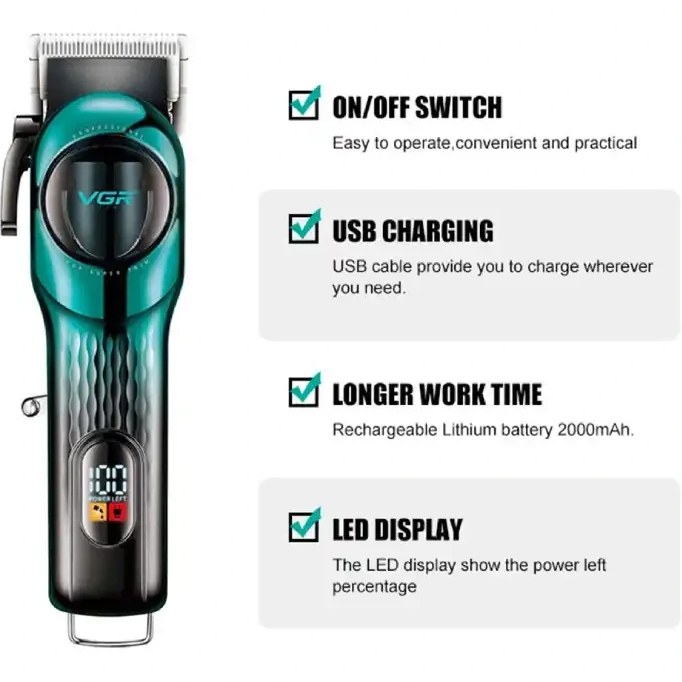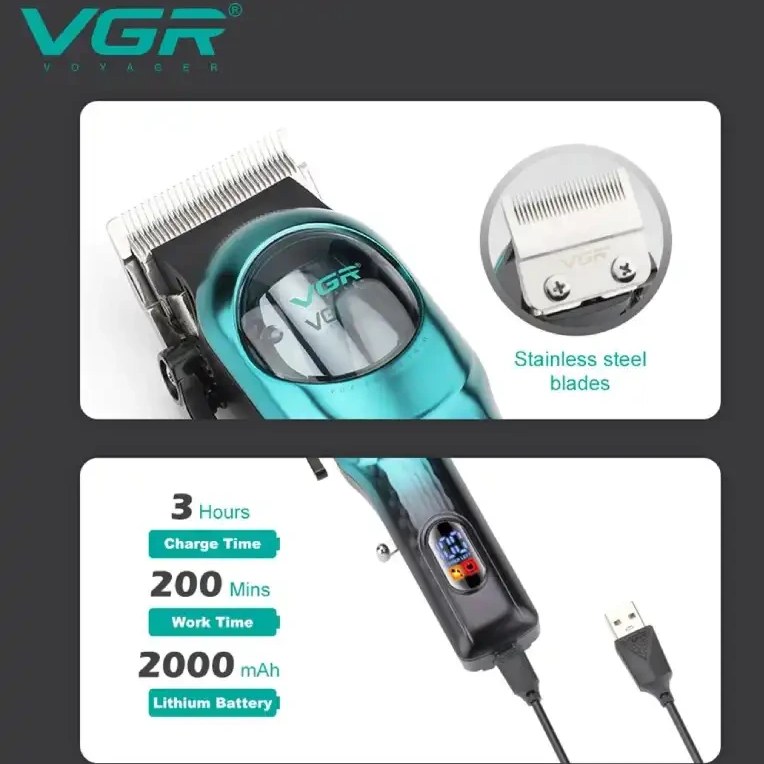 ماشین اصلاح وی جی آر مدل V-166 با برش مستقیم و تیغه استیل ضد زنگ