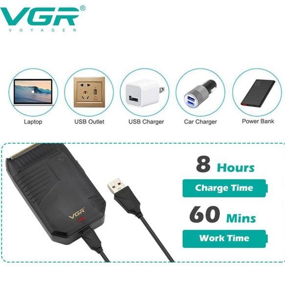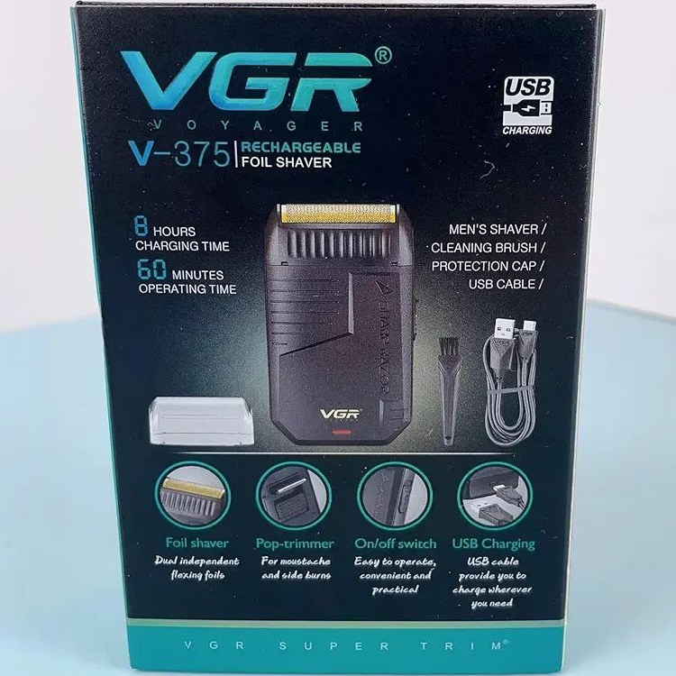 ماشین اصلاح وی جی آر مدل V-375 با تکنولوژی برش مستقیم و تیغه استیل ضد زنگ