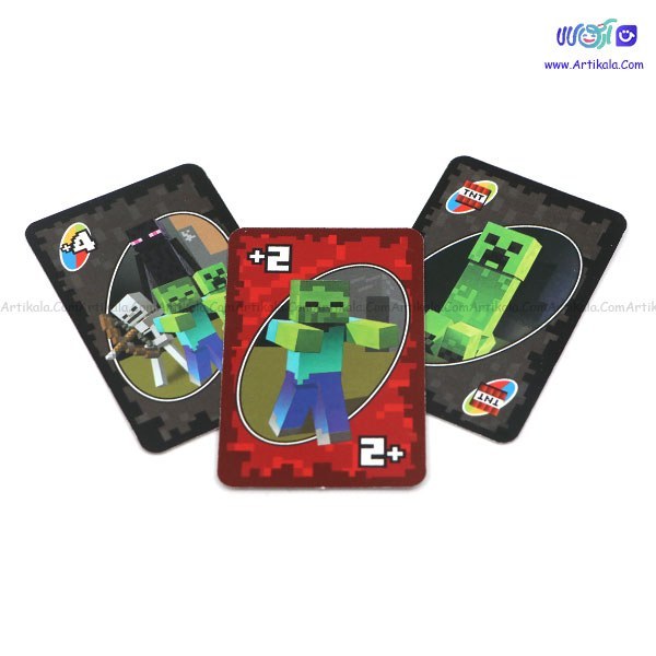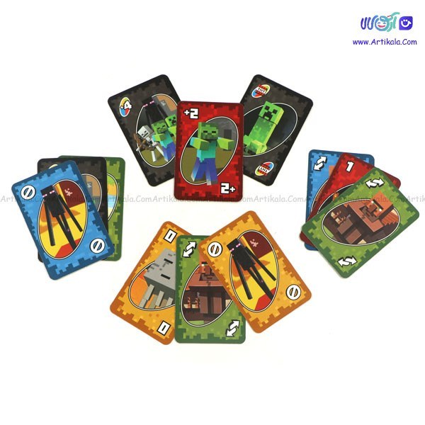 * **محتویات جعبه:** شامل 112 کارت بازی با تصاویر شخصیتها و نمادهای ماینکرافت و دفترچه راهنما.